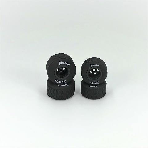 (2) Pre-mounted rear tires with Hoosier logo on black wheels