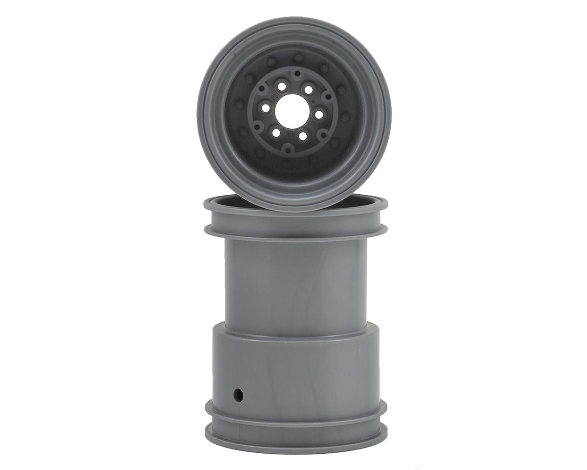 The Tribute wheel includes three off-set wheel adaptors. 11mm width for a stock Clod Buster or retro type Monster Truck width, 18mm for increased stability on standard wheelbase trucks and 25mm for the ultimate in footing for long wheelbase race trucks. The adaptors are installed with 6 x 2.5 x 12mm screws and centers precisely on the wheel for positive engagement. The wheels include open and closed planetary caps which attach with 6 x 2.5 x 8mm screws. The planetary caps support a scale look as well as a quick change racer function to suit individual needs.Â