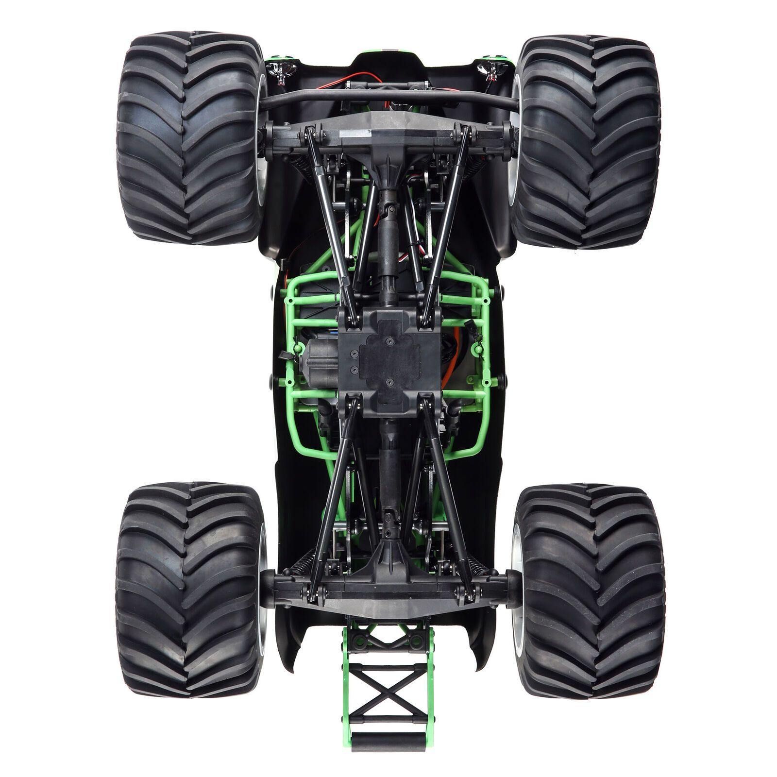Completely designed from the ground up, the Losi® LMT 4WD Solid Axle Monster Truck is the first of its kind on the market combining all-out performance with incredible scale detail. Starting with the chassis, a twin vertical plate is designed to provide all of the performance adjustments needed to tune the truck for any situation. Whether you are a scale driver, a basher or a racer, the chassis is designed to accommodate multiple shock setups keeping you tracking straight, no matter the terrain. New multi-piece axle housings surround the 1/8th scale drivetrain. Additionally, the easy access center transmission comes stock with a center differential and allows for quick changes with the optional spool for that wheel standing action. For the true Monster truck experience, the axles also allow for optional 4-wheel steering and a new adjustable servo saver to keep the wheels pointed in the right direction. The Spektrum™ Firma™ Smart 130 Amp ESC and 3150kv 4-pole Brushless motor allow you to unlock blazing speeds. Drivers stay in control with a DX3™ transmitter and a Spektrum SR315 DSMR® 3-Channel Sport Receiver. A composite flip top cage adds scale realism and protection, as well as functionality so you can easily access your battery and electronics. Of course, the scale detail doesn't stop there with headers, drivers and LED lights and we've teamed up with Monster Jam for your choice of a Grave Digger or Son-Uva Digger body. The LMT Monster Truck has just thrown down the gauntlet on solid axle monster trucks.