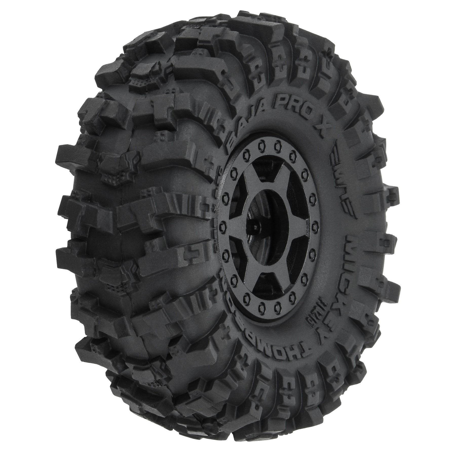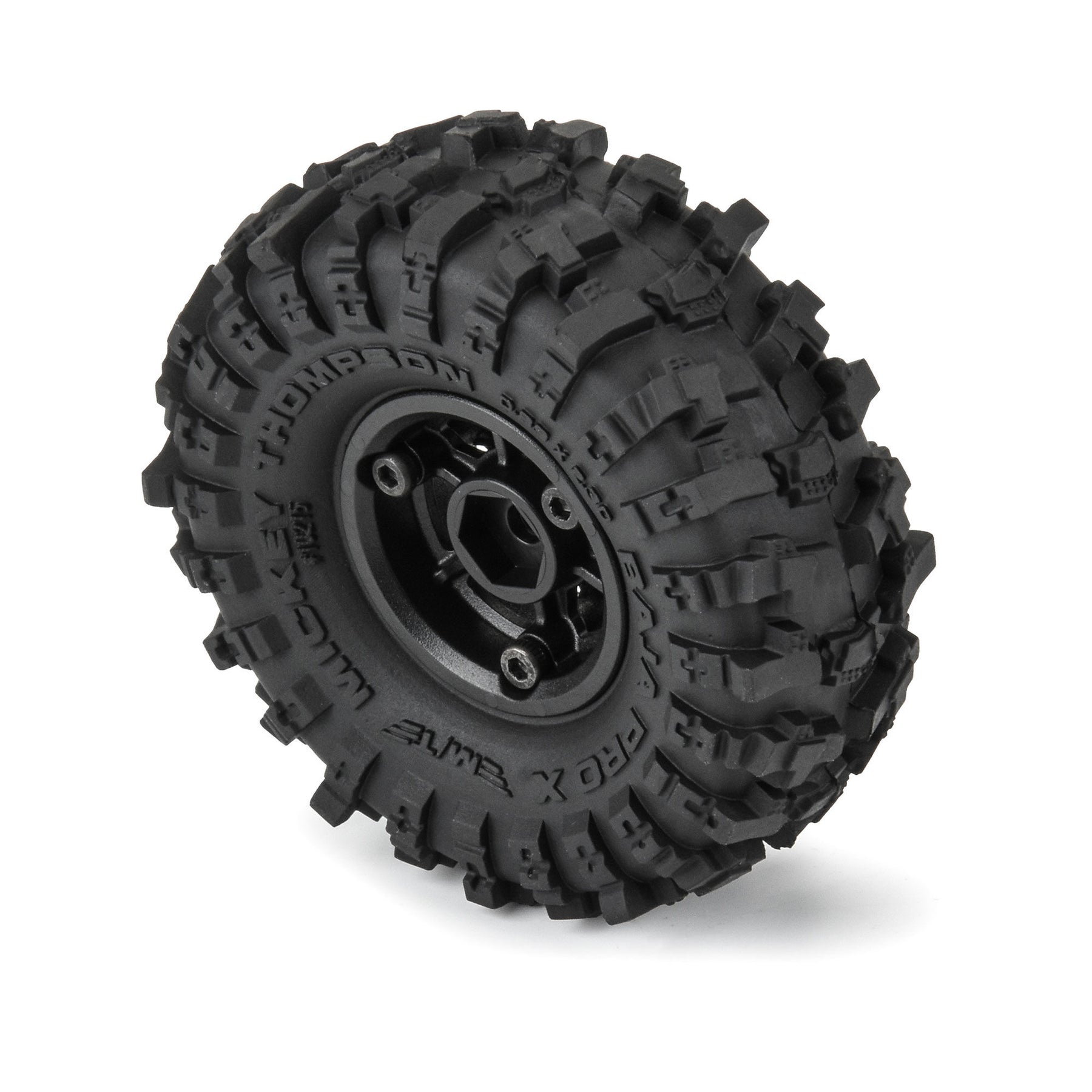 PRO1021510 | Mickey Thompson® Baja Pro™ X 1.0" Tires Mounted on Mini Holcomb Black Internal Bead-Loc 7mm Hex Wheels (4) for SCX24 Front or Rear