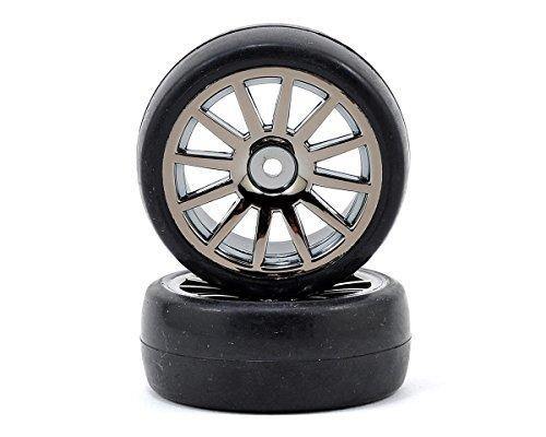Traxxas 7573A Tires & wheels assembled glued (12-spoke black chrome wheels slick tires) (2)