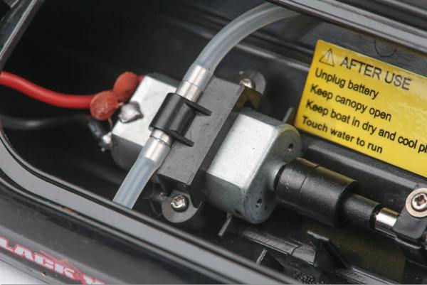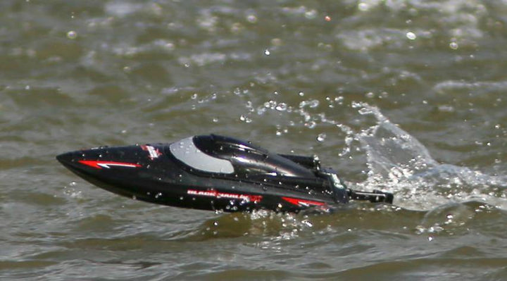 The Black Marlin MX is a micro-size boat that's the ideal size for racing across a swimming pool or local pond. The impressive speed is generated by a water-cooled 180-size motor in combination with an included 360mAh Lithium-Ion battery pack. Even better, if going too fast or running in choppy water causes the boat to flip, the self-righting feature quickly and automatically turns the boat right side up, so you can continue your run with minimal interruption.