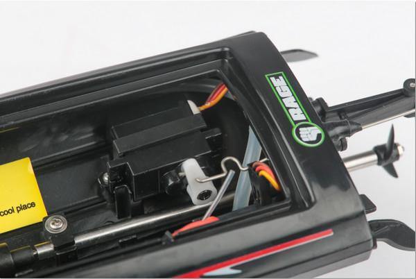 The MX is an RTR (Ready-To-Run) boat with a durable ABS hull that comes pre-painted with a sleek, aggressive trim scheme that gives it an even faster look. It arrives 100% factory-assembled out of the box with a 2-channel, 2.4 GHz proportional radio system that features precision steering control through the waterproof 9-gram steering servo and linear throttle feel supplied by an electronic speed control with reverse.