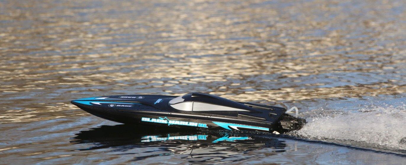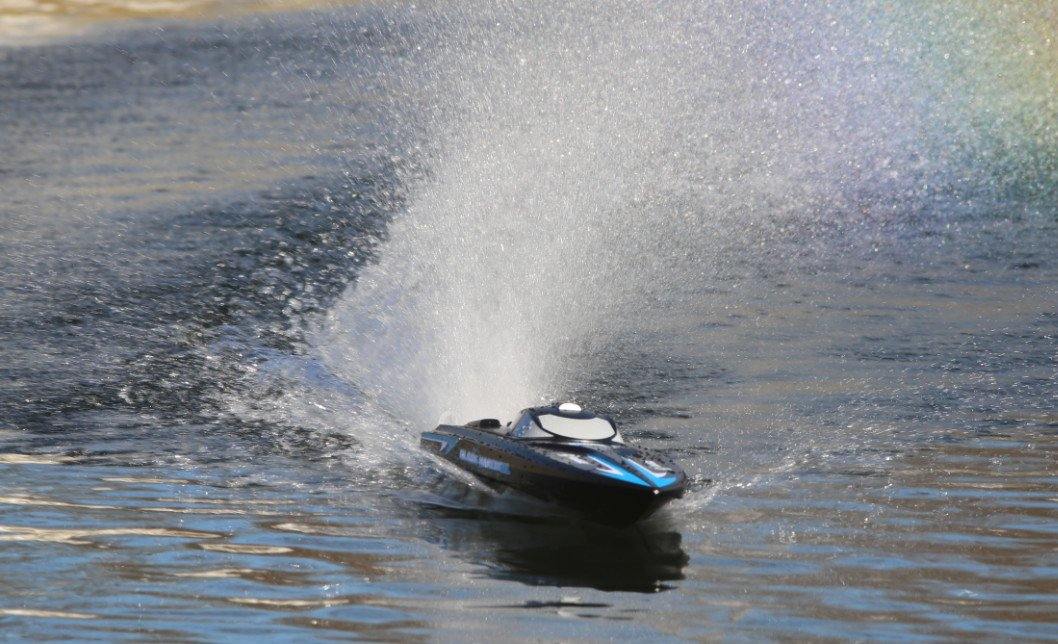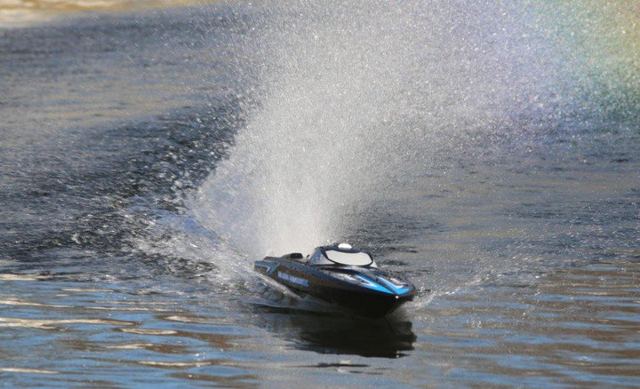 The Black Marlin BL will have you racing across your local pond or lake with brushless power in no time. The impressive speed is generated by the installed powerful brushless 3500KV motor in combination with a 20A Water-Cooled ESC with reverse and the included 3S 1800mAh Lipo battery pack.