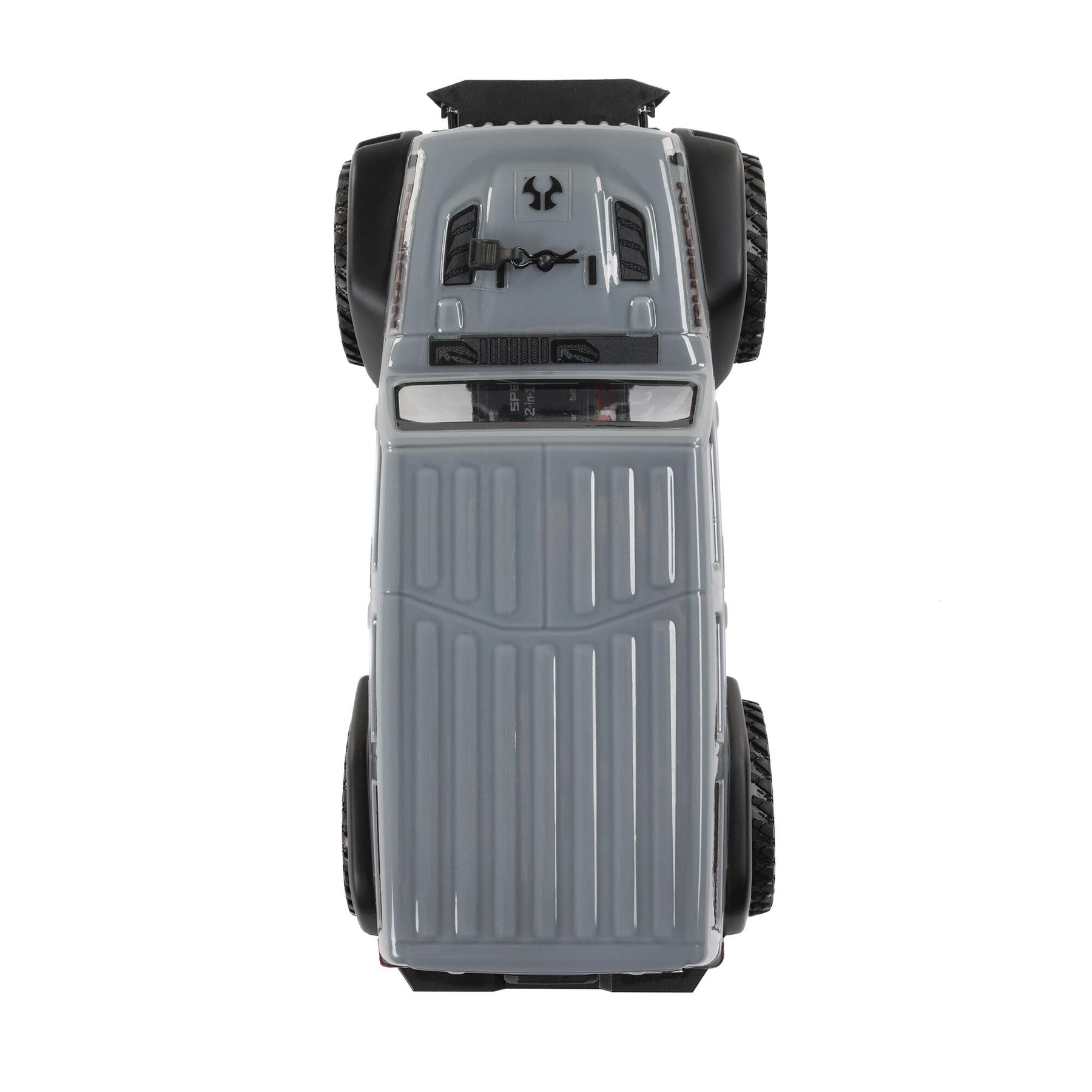 Inside the box, in addition to the assembled and finished rig, you’ll find a Spektrum 2.4GHz transmitter, 350mAh LiPo battery, and handy USB charger. Four AA batteries are even included for the transmitter. The SCX24 Jeep Wrangler JLU is the complete micro rock crawling package. Think small, and get ready for big Axial adventures!
