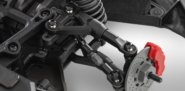 - Adjustable droop, camber, toe, ackerman, track, & roll center