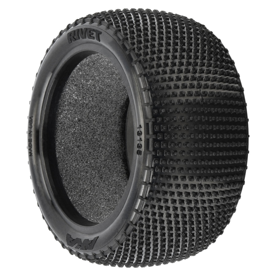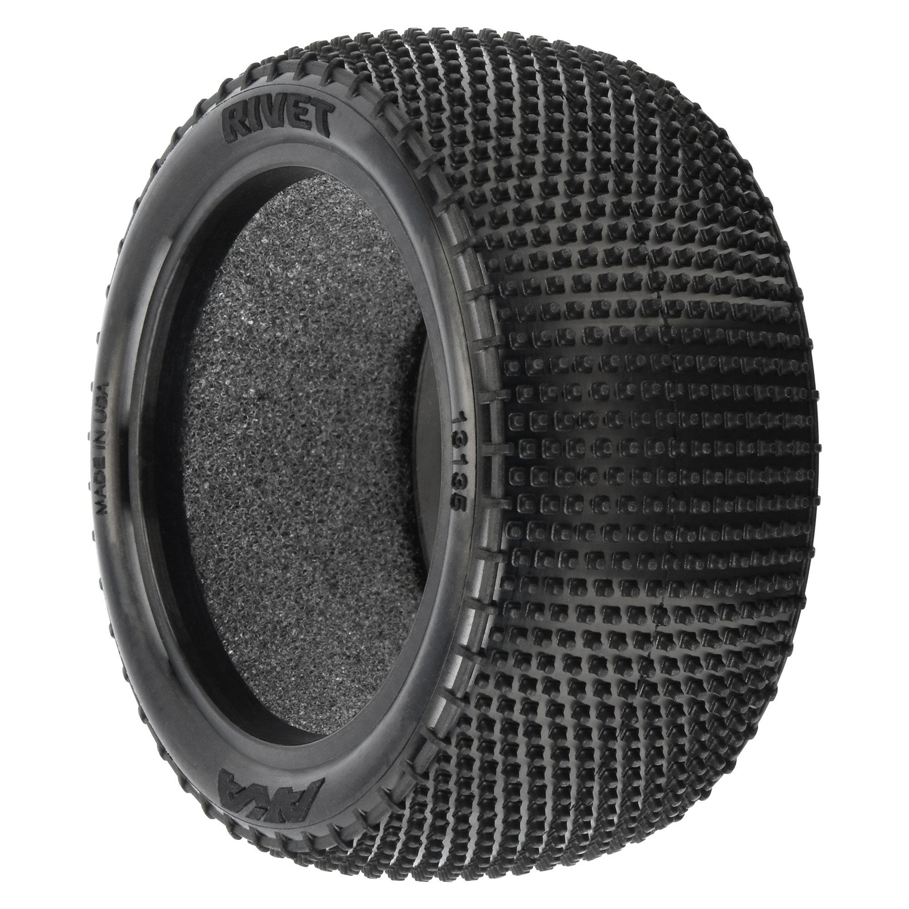 Rivet tires are available in a 1/10th buggy rear, 2wd, and 4wd front. Offered in two compounds specially formulated for carpet racing, Soft Carpet and Medium Carpet.