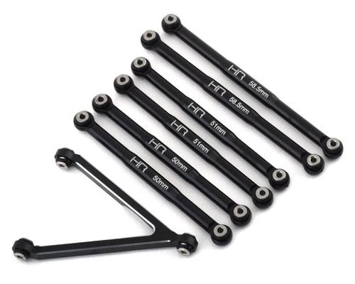 Hot Racing optional upgrade aluminum link set for 5.26" (133.7mm) wheelbase Axial SCX24 vehicles. Add durability to your SCX24 with LWB by upgrading your stock plastic links with the Hot Racing aluminum link kit. The links eliminates axle wrap and unwanted axle steer, especially in Crawing applications.