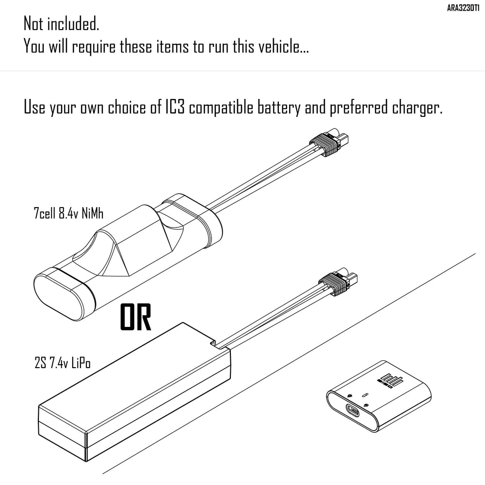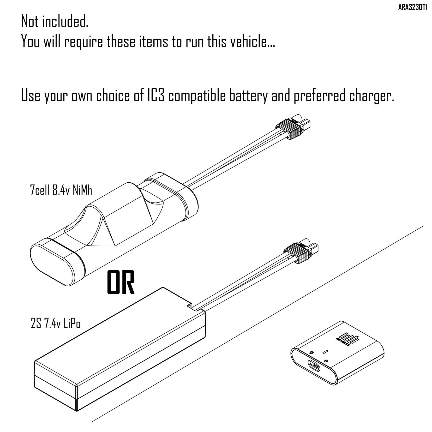 - (1) 7-Cell NiMH or 2S LiPo battery with IC3/EC3 Connector