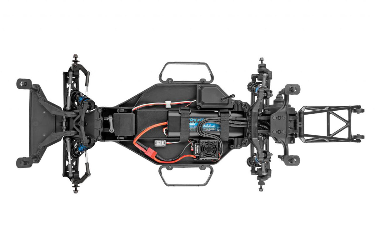 - Low center-of-gravity molded composite chassis with hook-and-loop battery straps that accommodate both NiMH and 2/3S LiPo battery packs
