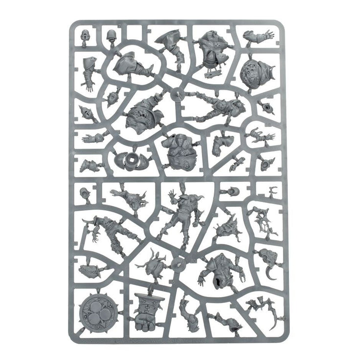 A multipart plastic kit that makes 1x Nurgle`s Rotters team for Blood Bowl. This kit makes 4x Bloaters, 2x Pestigors and 6x Rotters, all rather rotten and ghastly. Includes turn markers, balls and double-sided score coins.