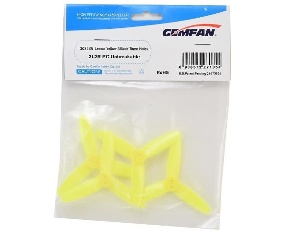 Gemfan PC 3035 3 Blade 3 Hole Bullnose Propellers 2L2R Lemon Yellow