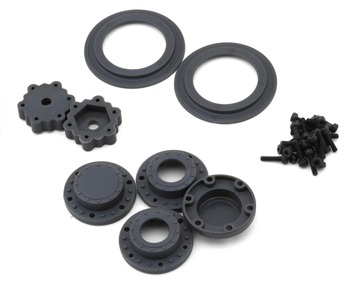 The Renegades feature a scaled-down chevron tread pattern with back-cut lugs, offering exceptional forward bite and cornering stability. The React open-cell inserts enhance support, while the soft "blue" compound provides maximum grip across various surfaces. The pre-mounted Mini Tribute wheels include a replaceable hex adaptor, open and closed planetary covers, and a decorative beadlock ring for added customization. With a lightweight and aggressive design, these tires deliver consistent performance and a scale-correct appearance.