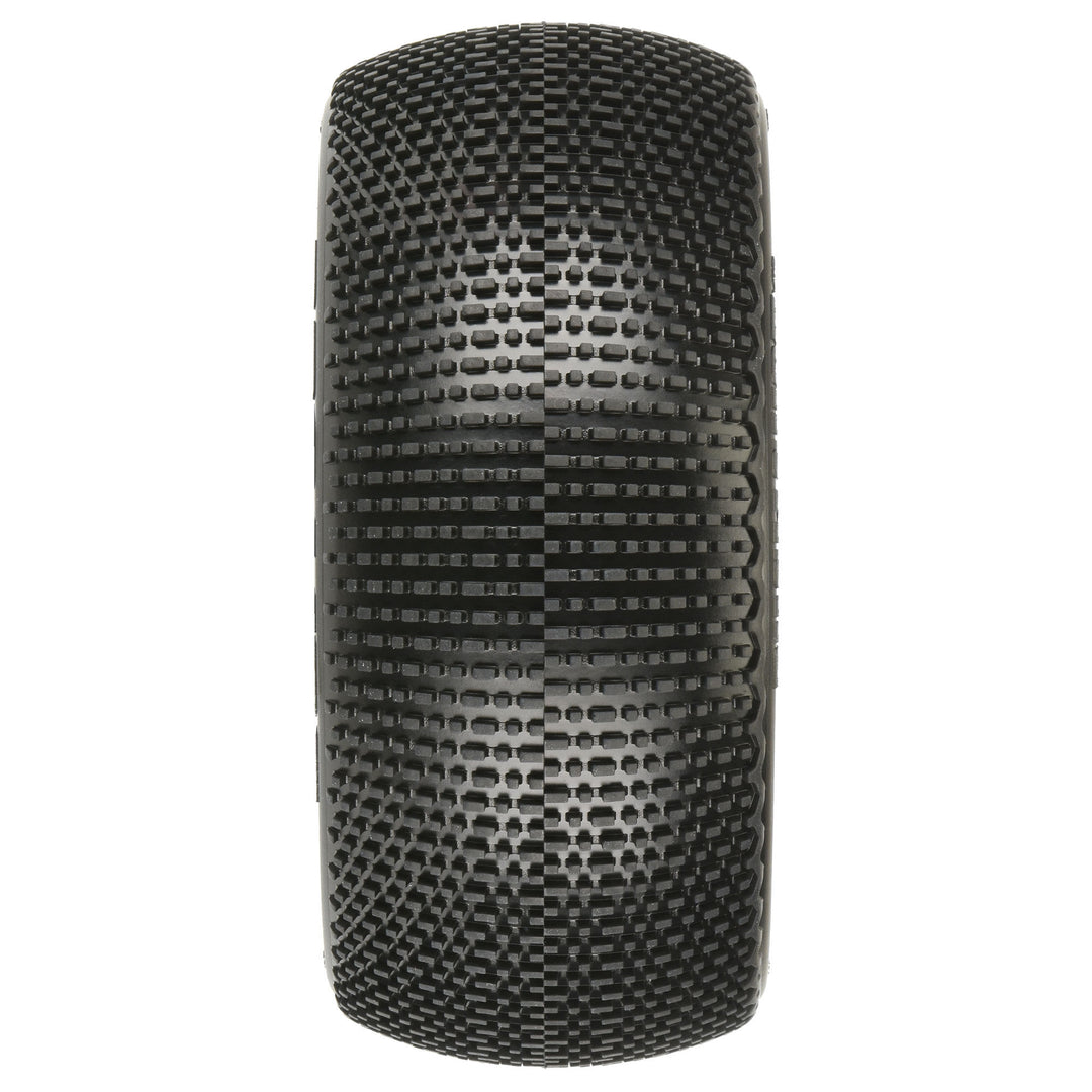 This is a pair of pre-mounted Buck Shot 1/8 Truggy Race Tires. The Buck Shot debuted at the 2017 ROAR National Championships and is already a Winner! The Buck Shot has pins that are very close in size to the amazing Hole Shot 2.0 but the Buck Shot pins are stacked closer together side to side, which provides significantly longer-lasting performance. Unique to the Buck Shot are the alternating elongated bars that provide incredible forward grip! Like the extremely popular SwitchBlade tire, the Buck Shot is a directional tire with different tread on the outside compared to the inside, allowing you to mount the tires in the direction that suits your current track conditions. One side of the tire has standard pins, which is ideal for loose or low traction conditions where you want the tire to add side grip and improve steering. When you mount the tire the other direction, the connected side tread (Blade) reduces side traction in high-bite or edgy conditions. Racers who have tried the Buck Shot are saying that it is their new favorite tire!