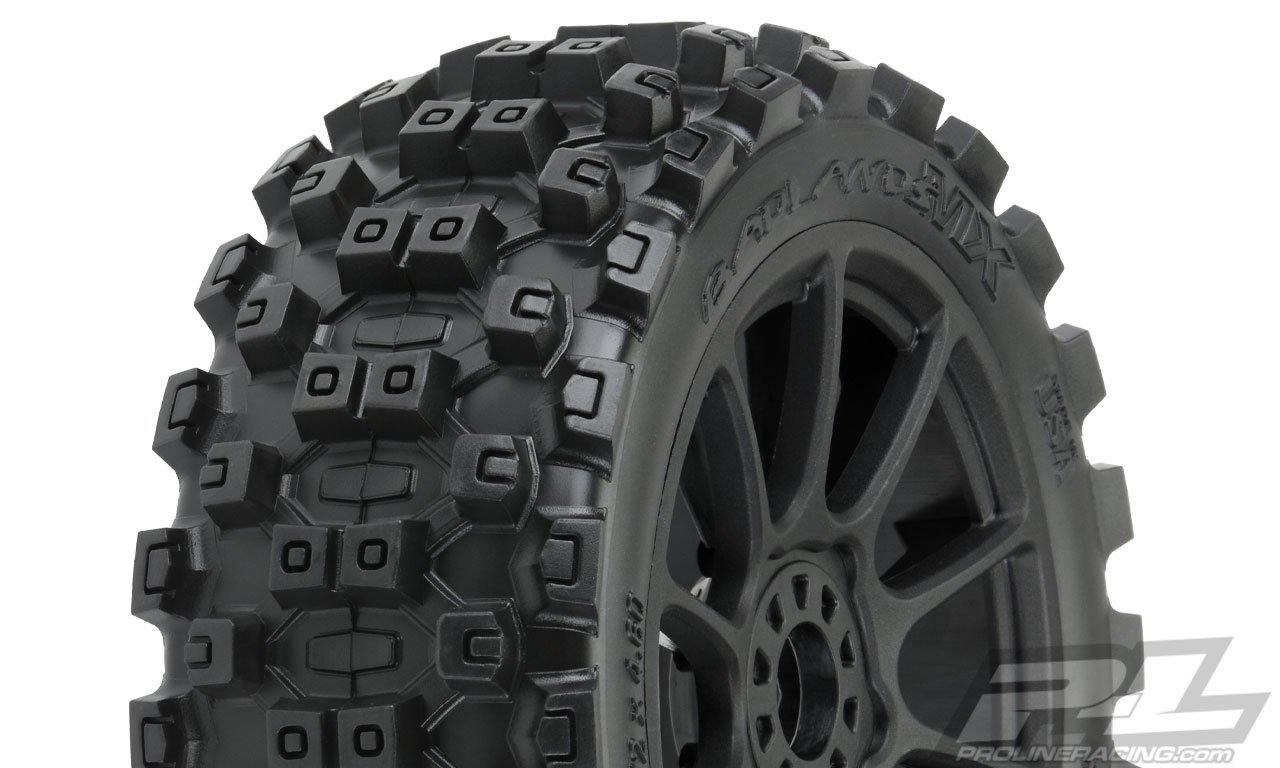 Now these iconic Badlands MX Tire is Pre-mounted on Mach 10 Black Wheels so you don't have to worry about gluing your own tires or waiting for them to dry. All you need to do is slap them on your buggy and get to ripping up the dirt! The Mach 10 features 10 aggressive spokes that will make your off-road bash buggy look fast even sitting still. The Mach 10 wheels have a 17mm hex and are made from a single molded piece of high-quality Nylon proudly produced by Pro-Line in the USA! Be the first on your block to get the all-new Badlands MX tires - Order yours today!
