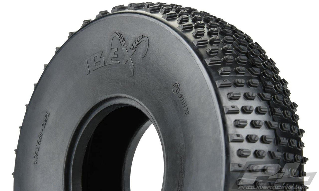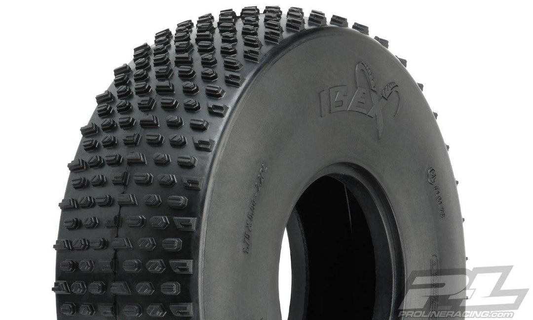 This is a pair of Ibex Ultra Comp 2.2" Tires No Foam. Pro-Line is ready to unleash the Ibex; the ultimate 2.2" Competition Crawling Tire! In nature, the Ibex is a powerful and wild species of mountain goat known for its large horns and incredible climbing abilities on near-vertical rock faces. This amazing animal served as an inspiration for developing the pinnacle of comp crawling tire performance: the 2.2" Ultra Comp Ibex tire in Super Soft Predator compound.