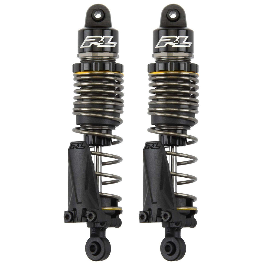 This is a pair of PowerStroke Front Shocks for ARRMA® 3S and 4S vehicles. Pro-Line is ready to unleash high-performance PowerStroke Shocks that have been specifically designed for your ARRMA® 3S and 4S vehicles! What makes these shocks so special? They include 14mm big bore aluminum shock bodies with infinite spring pre-load adjustment, strong machined aluminum shock caps, beefy 3.5mm shock shafts, and true dual-rate springs for a massive performance and durability upgrade over the stock shocks. For the 3S line of vehicles, all you need to do is fill the shocks with oil, install, and go! The 4S trucks require slightly longer shocks, so we recommend installing the included longer shock ends before use. This PowerStroke Shock is one of the most important upgrades available for your truck or buggy. Get your PowerStroke shocks today!
