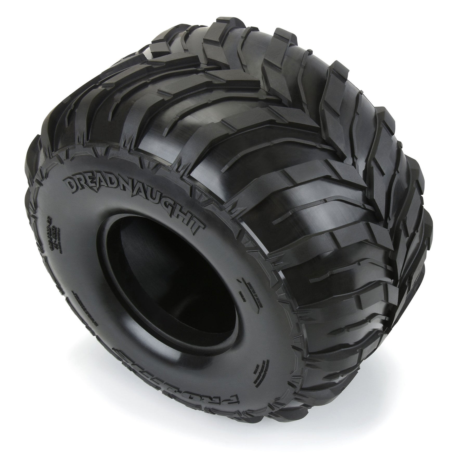 This is a pair of Dreadnaught Tires for the Losi® LMT 2.0. Pro-Line has you covered with high-performance Dreadnaught tires made specifically for your truck! The Dreadnaught tires feature sipes inside the aggressive chevron-style tread for exceptional scale realism and increases forward bite on any surface. As you should expect from Pro-Line, the Dreadnaught tire is made from soft and sticky rubber that will give your LMT 2.0 maximum acceleration with stunt wheelie-popping traction. Get your own set today!