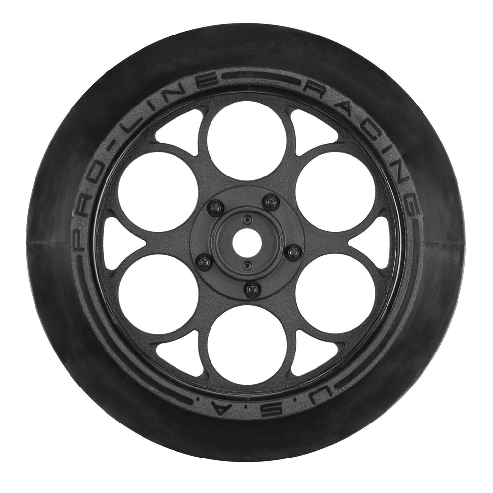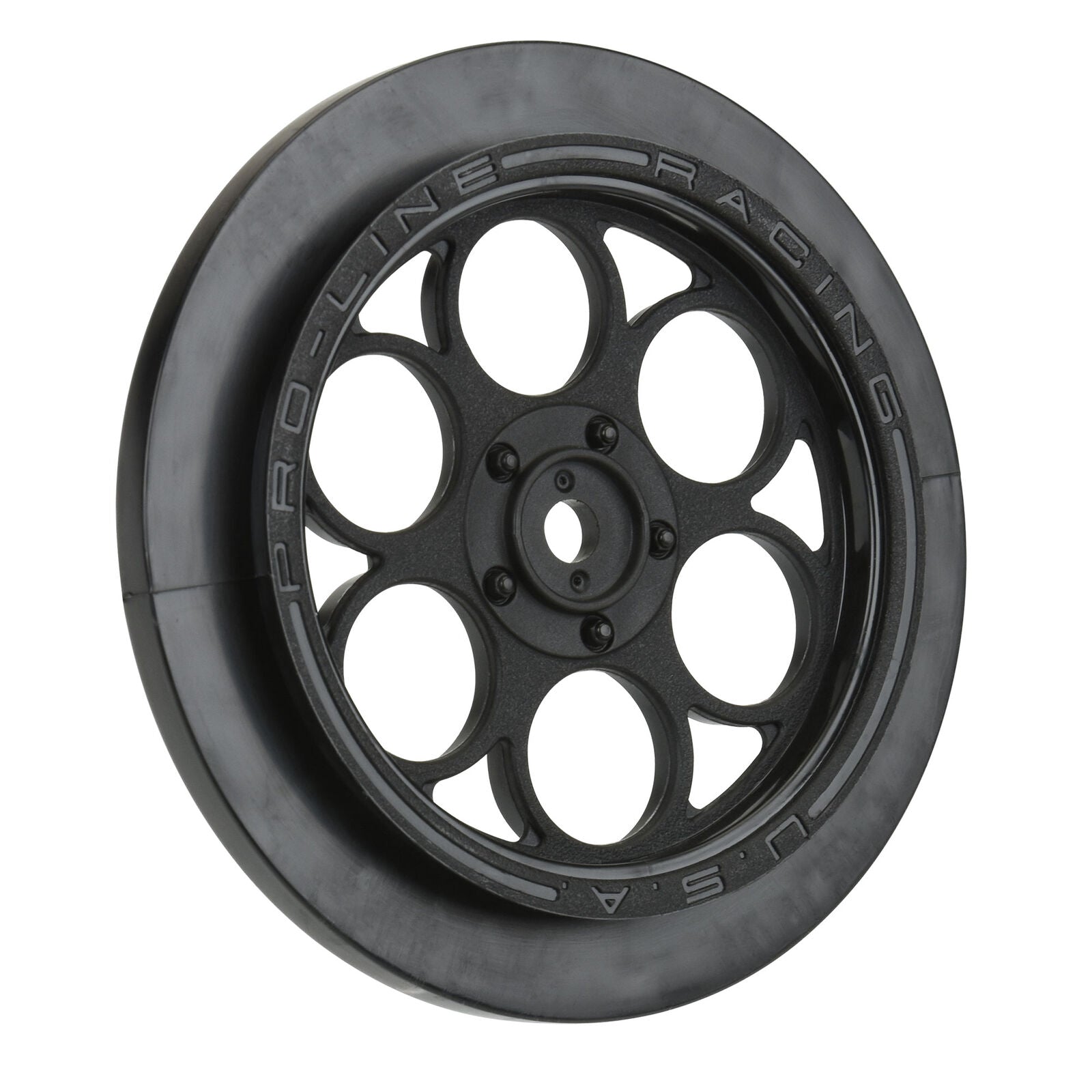 It's Showtime! Pro-Line has an all-new 2.2"/2.7" Black Drag Front Wheel featuring a scale spoke pattern that mimics full-size drag wheels. The Showtime Front Runner 2.2"/2.7" wheel is a perfect fit for Pro-Line's new Front Runner 2.2"/2.7" Tires (PRO10197203) and is designed to be super lightweight and narrow for maximum performance. The Showtime Front Runner Wheels are a strong and lightweight 12mm hex wheel making them the ideal choice for performance drag racing. The wheel offset is ideal for Losi® 22S™ No Prep Drag Car (LOS03035/LOS03041), 2wd Slash® trucks converted to no-prep Drag Racing cars, and AE DR10. This wheel is designed to eliminate the need for foam insert completely for the ultimate in lightweight performance. The Showtime Front Runner Wheel is proudly made by Pro-Line and Made in the USA. Launch your no-prep Dragster to the next level with the Pro-Line Showtime Front Runner Drag Wheels today!