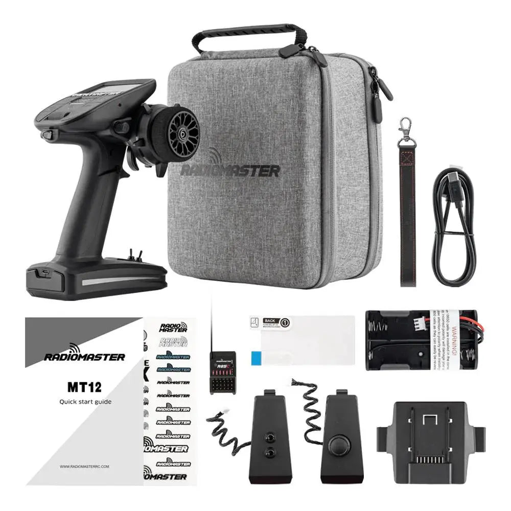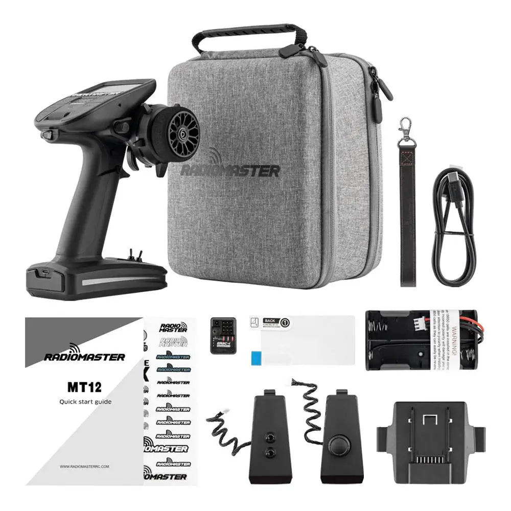 The RadioMaster MT12 is a pioneering open-source surface radio, and the first surface radio officially supported by EdgeTX, ExpressLRS, and the Multi-module project. Boasting 10 physical inputs and the capability to handle either 16 or 32 channels*, the MT12 is primed for a wide array of surface models, from cars and trucks to boats and beyond. Featuring extensive customizability and a versatile operating system, the MT12 stands out as a highly configurable surface radio, prepared to excel in virtually any scenario.