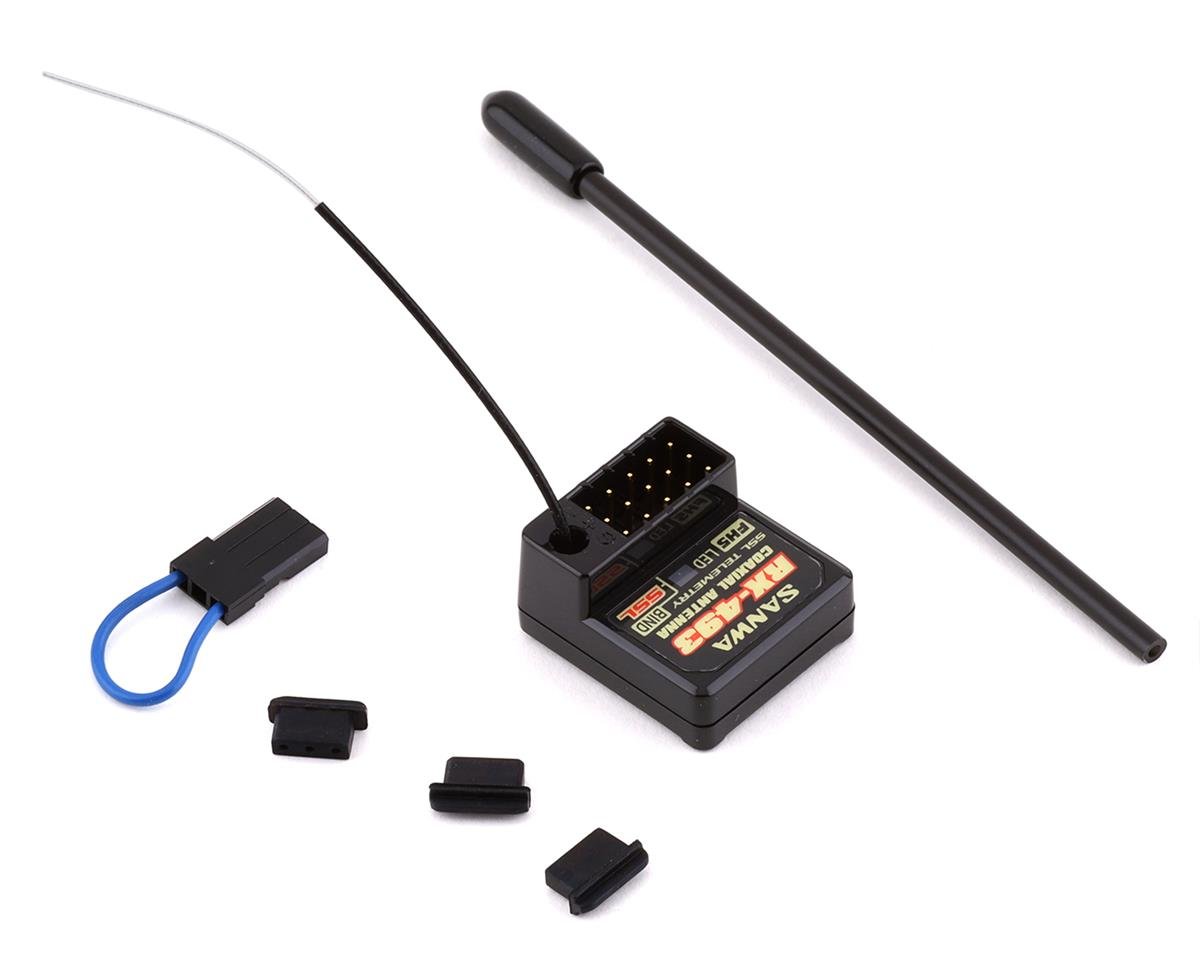 The included RX-493 M17 2.4GHz 4-Channel FHSS5 SRX/SSL Receiver is a FH5/FH5U and SXR response mode compatible receiver that features a traditional 100mm coaxial antenna with an integrated antenna tube mount, ensuring stable performance in about any situation compared to built-in antenna receiver units. Furthermore the high-voltage compatible receiver is waterproof, comparable to IPX4, and it supports Sanwa’s SSL function. The unit measures 26×23.2x14mm, it weighs in at 6.2g and is designed to work exclusively with the Sanwa M17 radio system.