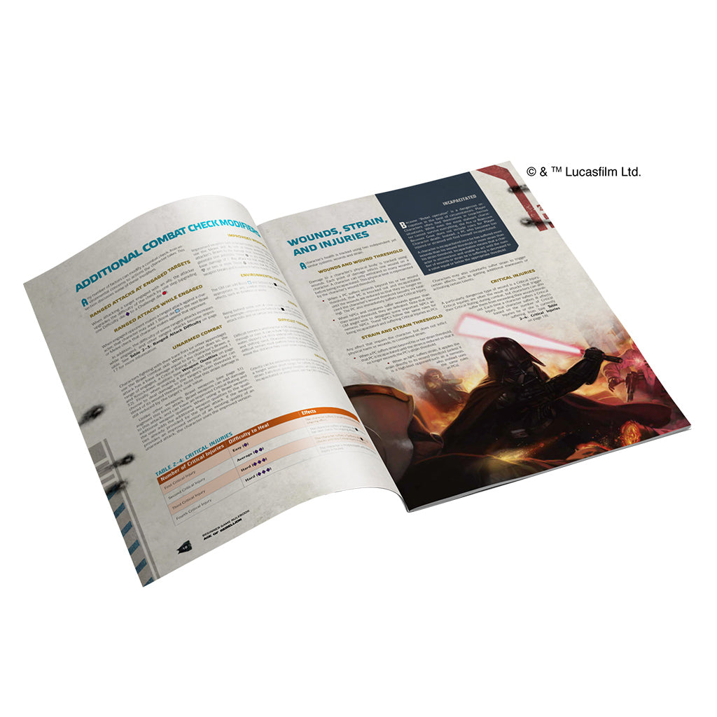 Jump right into the action with the Age of Rebellion Beginner Game! This set features a complete adventure, pre-made character folios, maps, tokens, and a simplified core rulebook that lets you open the box and start playing! The adventure is designed to teach people new to roleplaying (or just new to Star Wars: Roleplaying) how the game works as they play, so there’s very little time spent learning the rules beforehand. Then, once the adventure is done, the game contains material to continue playing new adventures in the heart of the rebellion against the Empire.