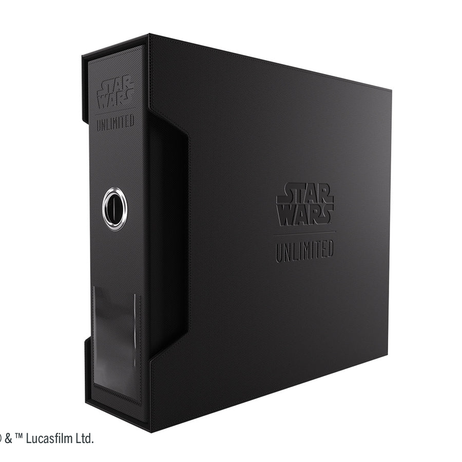 officially licensed premium storage solution for cards, specifically designed for Star Wars: Unlimited players and collectors. The Premium Cardport XL includes a high-quality ring binder and matching slipcase that fit standard-sized 12 or 24-pocket pages. It is optimized for playset pocket pages and therefore perfect for collecting Star Wars: Unlimited Mastersets.Unique Feature: The Premium Cardport XL is designed to seamlessly fit into most popular square-shaped shelves. The perfectly placed hole in the front and the innovative notches at the side of the slipcase guarantee easy removal and access – no matter if stored vertically or horizontally.