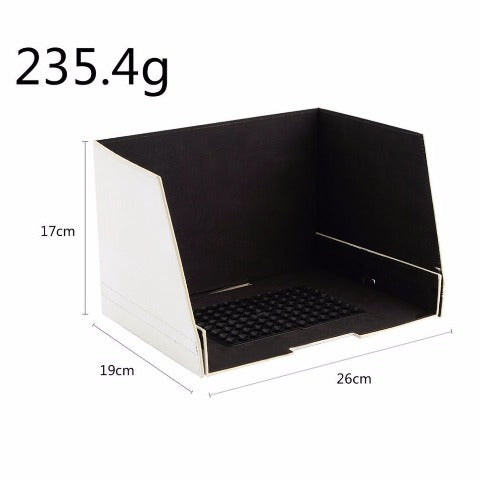 Interior is professional grade flocked fabric (black) to absorb reflection.