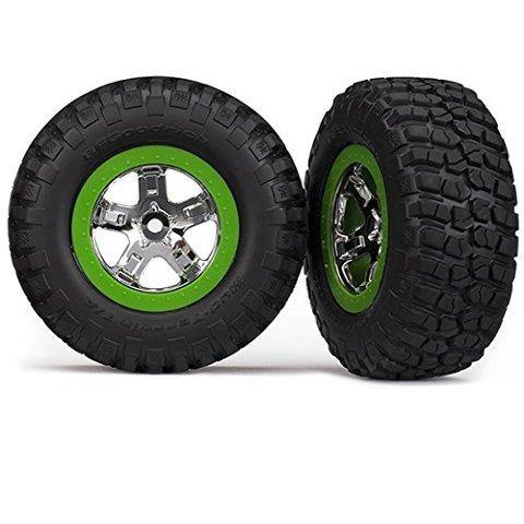 Traxxas 5865 Tires & wheels assembled glued (SCT chrome green beadlock wheel BFG Mud-Terrain TA KM2 tire foam inserts) (2) (2WD front only)