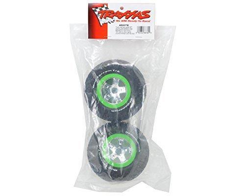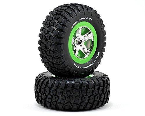 Traxxas 6876 Tires & wheels assembled glued (SCT chrome green beadlock wheel BFG Mud-Terrain TA KM2 tire foam inserts) (2) (4WD frontrear 2WD rear only)