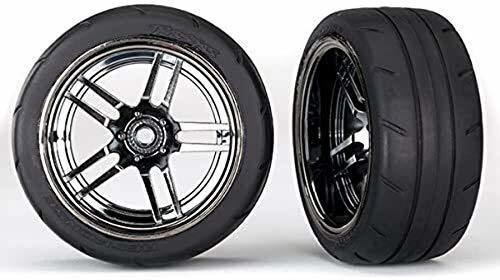 Traxxas 8374 Tires and wheels assembled glued (split-spoke black chrome wheels 1.9' Response tires) (extra wide rear) (2)