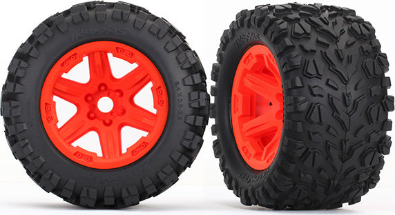 Traxxas 8672A Tires & wheels assembled glued (orange wheels Talon EXT tires foam inserts) (2) (17mm splined) (TSM rated)