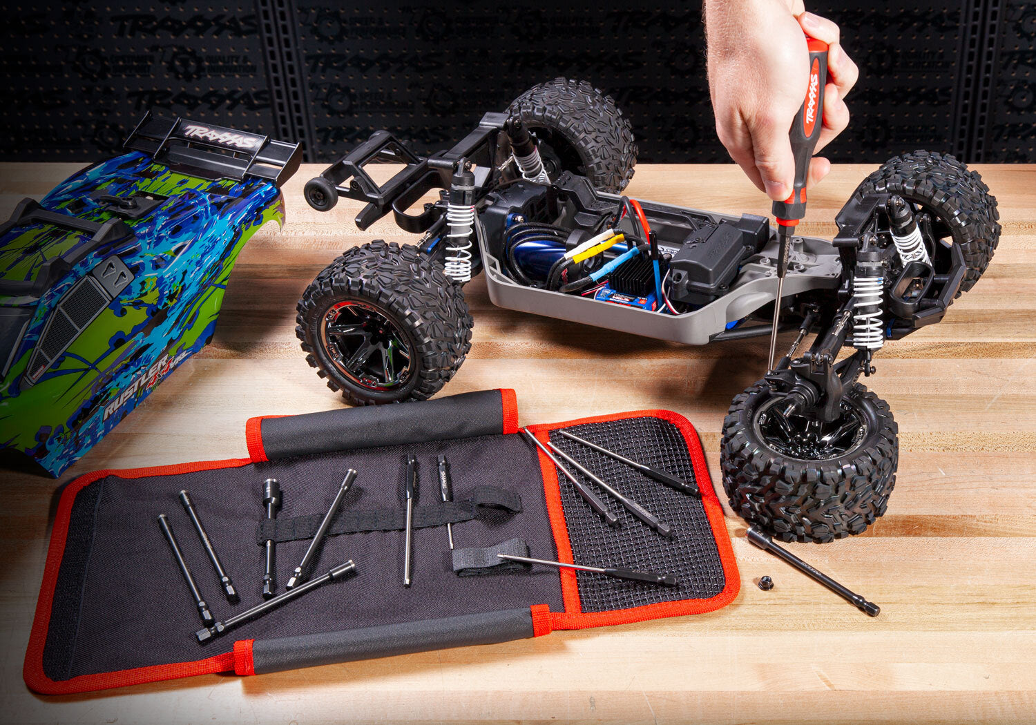 The included rubber overmolded handle holds the bits securely with a powerful magnet for fast bit changes. Headed to the track? Don't worry, the included heavy-duty tool pouch keeps everything secure for traveling. Pick up any of the Premium Metric Speed Bit Sets and get wrenching with the only tools guaranteed to be Traxxas Tough™.